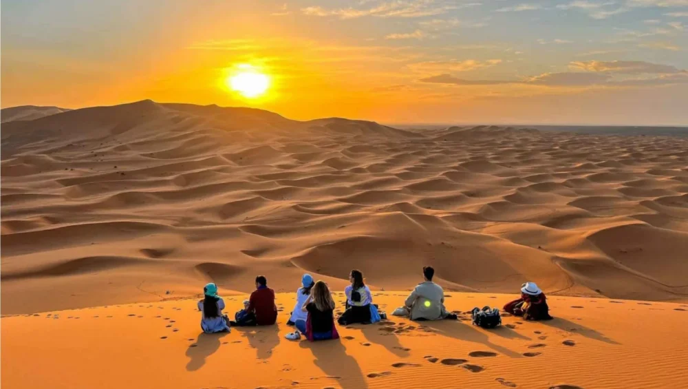 Experience a camel trek at sunset, visit nomadic families, and enjoy the rhythm of Gnawa music in Khamlia village. The journey continues through the dramatic Todgha Gorge, the lush Dades Valley, and the cinematic city of Ouarzazate, before arriving in the vibrant red city of Marrakech.